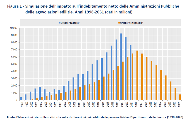 Particolare rilievo assumono, in termini di impatto sull’andamento temporale dell’indebitamento netto delle Pubbliche Amministrazioni, i crediti d’imposta cosiddetti “pagabili”.