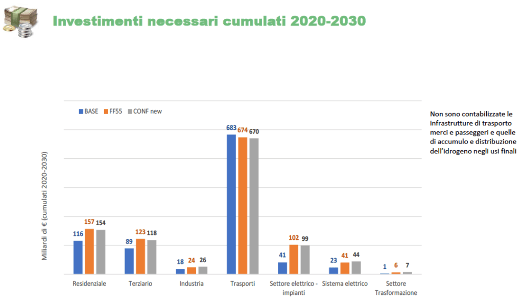 Stima del fabbisogno di investimenti per raggiungere gli obiettivi al 2030