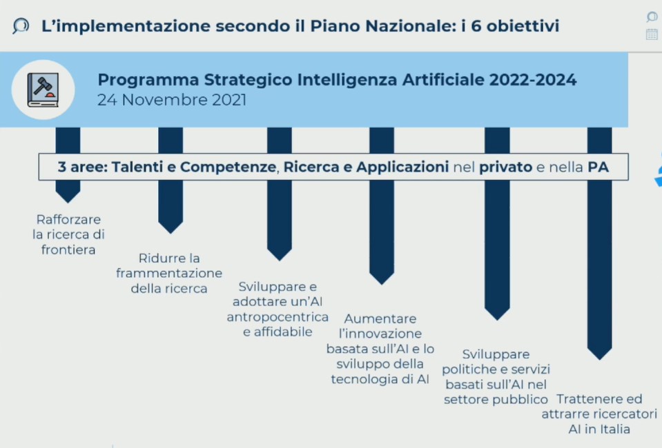 C’è poi lo sviluppo dell’AI a livello nazionale e che coinvolge università e istituzioni. Tra le attività in corso del Programma Strategico Nazionale, il primo gennaio scorso è stato avviato il Partenariato Esteso dedicato a ‘Intelligenza Artificiale: aspetti fondazionali’, ribattezzato Future Artificial Intelligence Research (Fair).