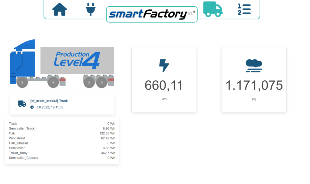 Durante la produzione, i dati vengono raccolti e memorizzati nella shell amministrativa e l’utente è in grado, ad esempio, di vedere l’effettiva impronta di carbonio e il consumo energetico durante il funzionamento.