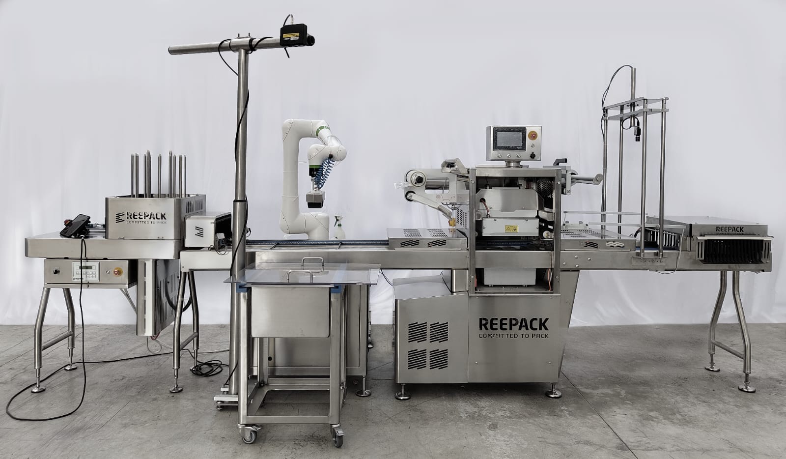 Il cuore della linea che sarà presentata nello stand di Reepack è ReeEco, la Tray Sealer (sigillatrice automatica) – cui si aggiungono un dispositivo disimpilatore per le vaschette (che è di fatto una macchina stand alone in termini di logica e quadro di automazione), elementi robotici collaborativi dotati di sistemi di visione 3D per il riconoscimento del prodotto alimentare da prelevare e dosare nelle vaschette ed infine una stazione di controllo qualità con sistema di visione 2D dedicato a verificare il corretto confezionamento del prodotto.